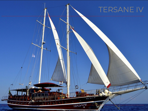 O Tersane IV é um charmoso barco a motor com dois mastros, inspirado em um gulet tradicional turco.