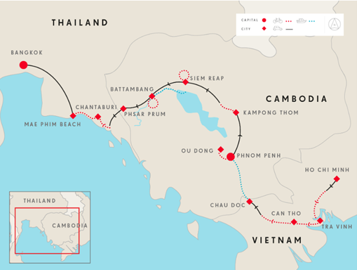 Viaje do icônico delta do Mekong até os templos espirituais de Angkor Wat. Pedale por estradas secundárias e cruze rios caudalosos. De capitais vibrantes e relíquias coloniais a trilhas tribais e propriedades humildes. Esta viagem incrível espera por você!