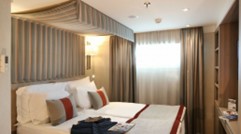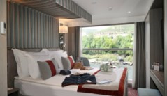 Cabines nas categorias A com 12 m², ou C e D, com 14,5m², que têm a mesma configuração, janelas mais amplas e ficam em andares superiores do barco.