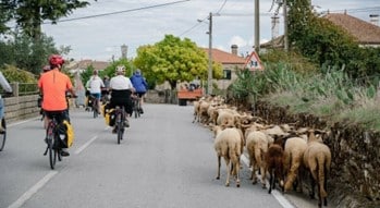 Bicicletas elétricas para o grupo todo, com veículo de apoio.