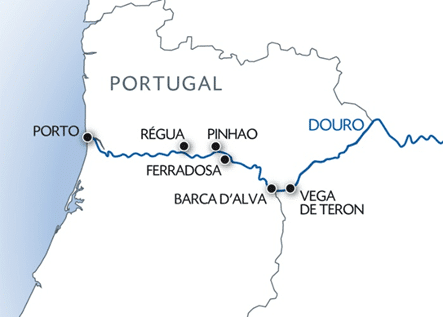 Cruzeiro guiado pelo pitoresco Rio Douro: A caminho do Oceano Atlântico, o Rio Douro serpenteia por uma paisagem cênica, quase dramática. Ele flui por desfiladeiros profundos e passa por encostas íngremes que testemunham sua cultura vinícola de 2.000 anos. O clima ameno permite o desenvolvimento não só das vinhas, mas também das oliveiras e amendoeiras.