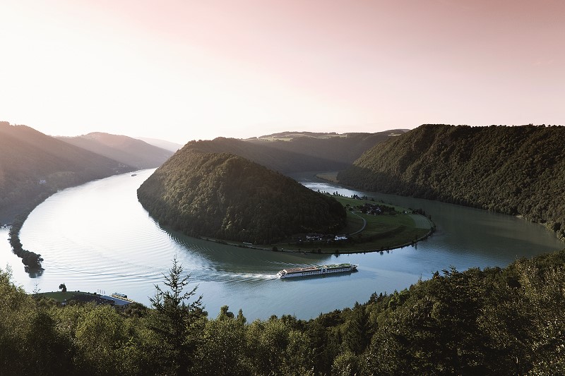 A paisagem já nos encantará desde o início, com o Schlögener Schlinge, uma bela curva de 180 graus do Rio Danúbio contornando o Maciço da Boêmia, um verdadeiro espetáculo da arte da natureza.